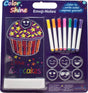 Light up craft kit for young artists. Cup Cake Emoji-Notes design with 7 Emoji disks, 7 pens & white LED dimmable base. Color on the screen and turn on the light to see it shine. This is a product to light up your child's artwork shine.