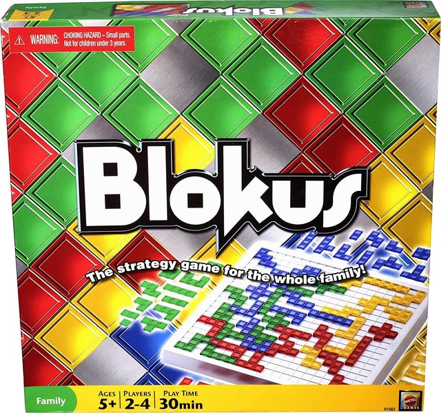 An abstract strategy game with transparent, Tetris-shaped, colorful pieces that players are trying to play onto the board. The only caveat to playing a piece is that it cannot lie adjacent to your other pieces, but instead must be placed touching at least one corner of your other pieces already on the board.