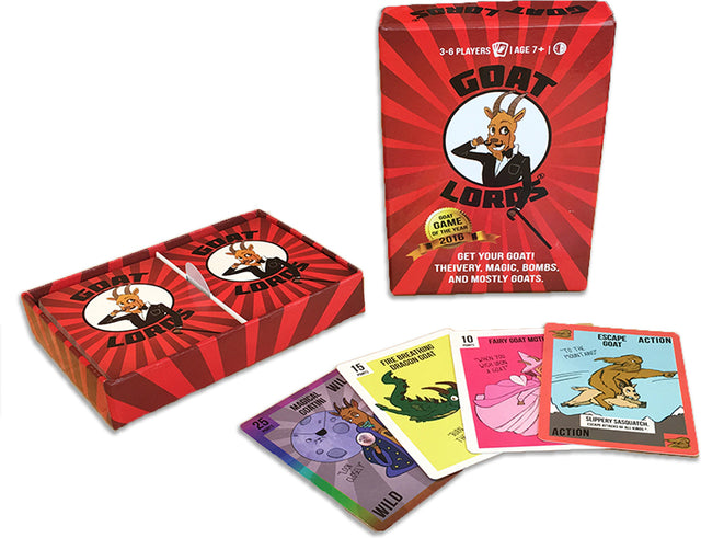 BECOME THE GOAT LORD: The GOAL of this hilariously strategic card game is to become Lord of the Goats! Stack identical pairs of goats in front of you to build your goatherd. Attack opponents by dueling for their top GOAT Stack to beat your lowly goat friends. Every time you win a duel, your goatherd value goes up. The player that has the biggest herd of goats by the end of the game WINS!