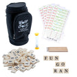 Players race against the sand timer to make words using the letter tiles available. Each round payers get a different number of tiles of which they can choose up to 5 tiles while the other tiles are randomly drawn from the golf bag. Use all your letters each round to keep a low score. The lowest score after nine rounds wins.