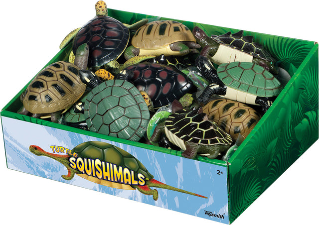 Squishy 5? turtles with hard shells come in assorted sea turtle and land turtle styles.